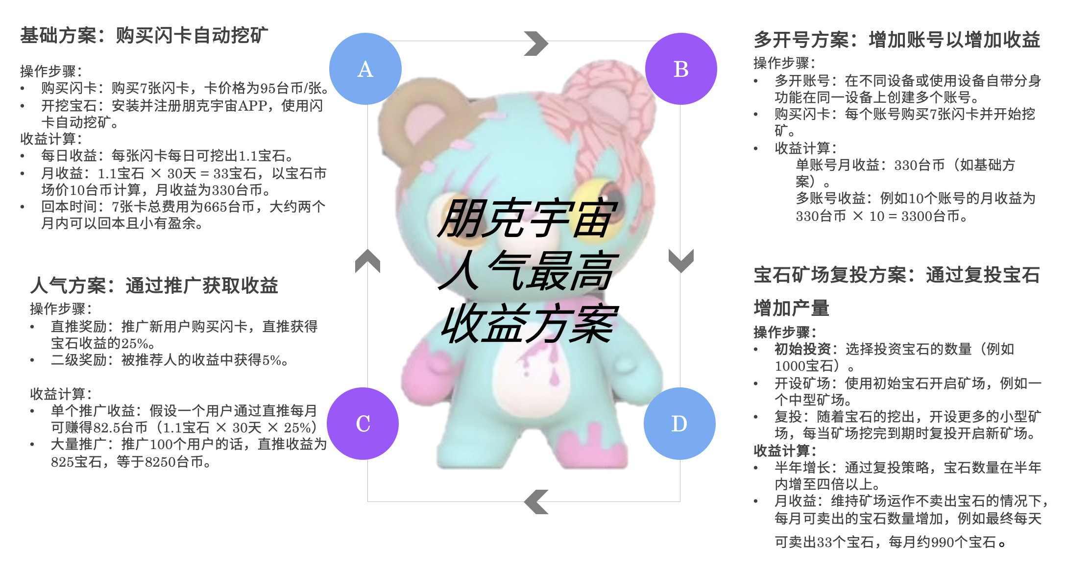 主要是通过购买闪卡获得卡片,每天挖宝石,挖到的宝石卖给商人来变现,变现的台币可以再次复投产生更大的利润,宝石价格会根据市场行情轻微浮动,目前的价格是在10 台币/颗,而且每天的宝石需求量是非常大的。(挖宝石后买卖变钱钱💎💎💎💰💵💵💵💵)